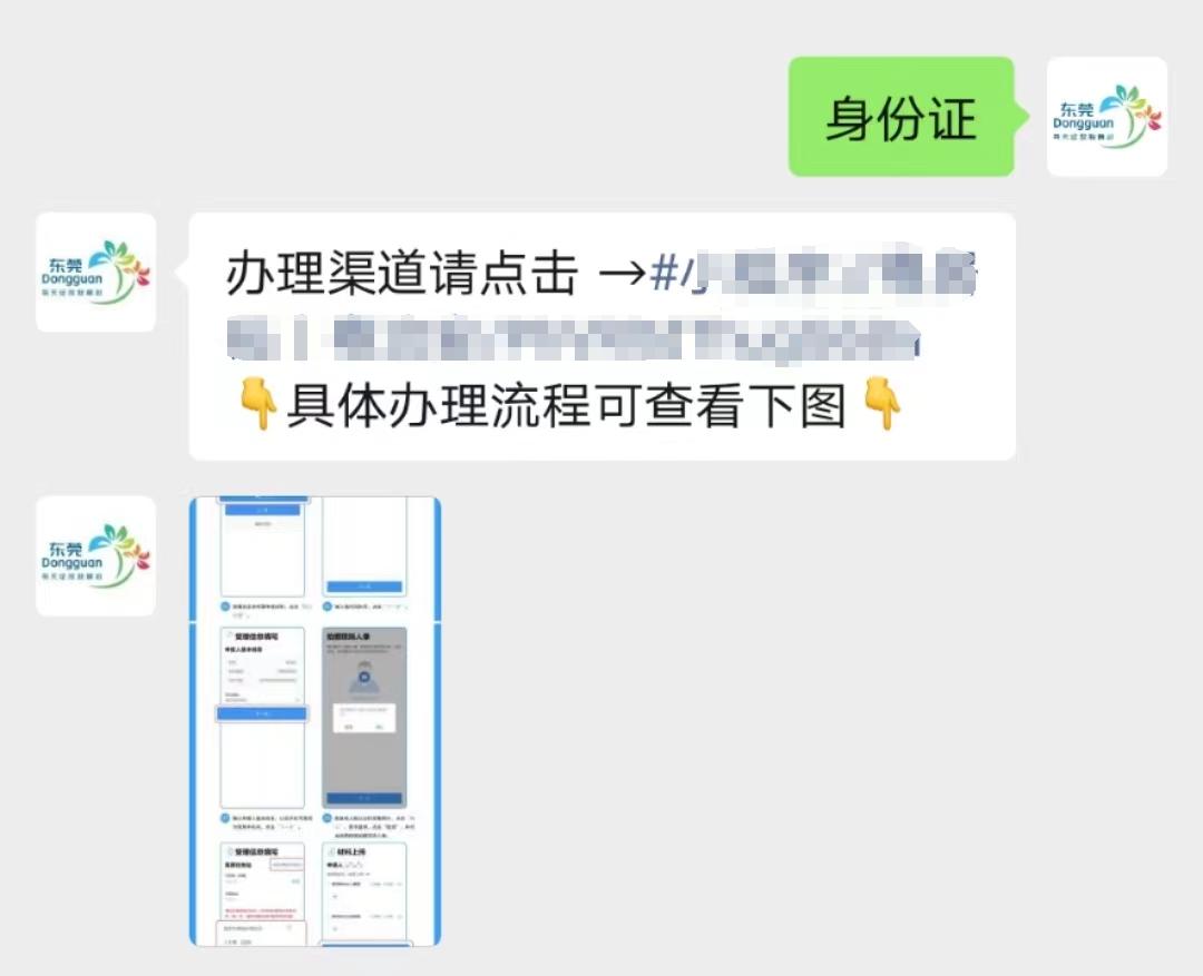 ②对话框输入并发送“身份证”,即可获取办理渠道及办理指南。