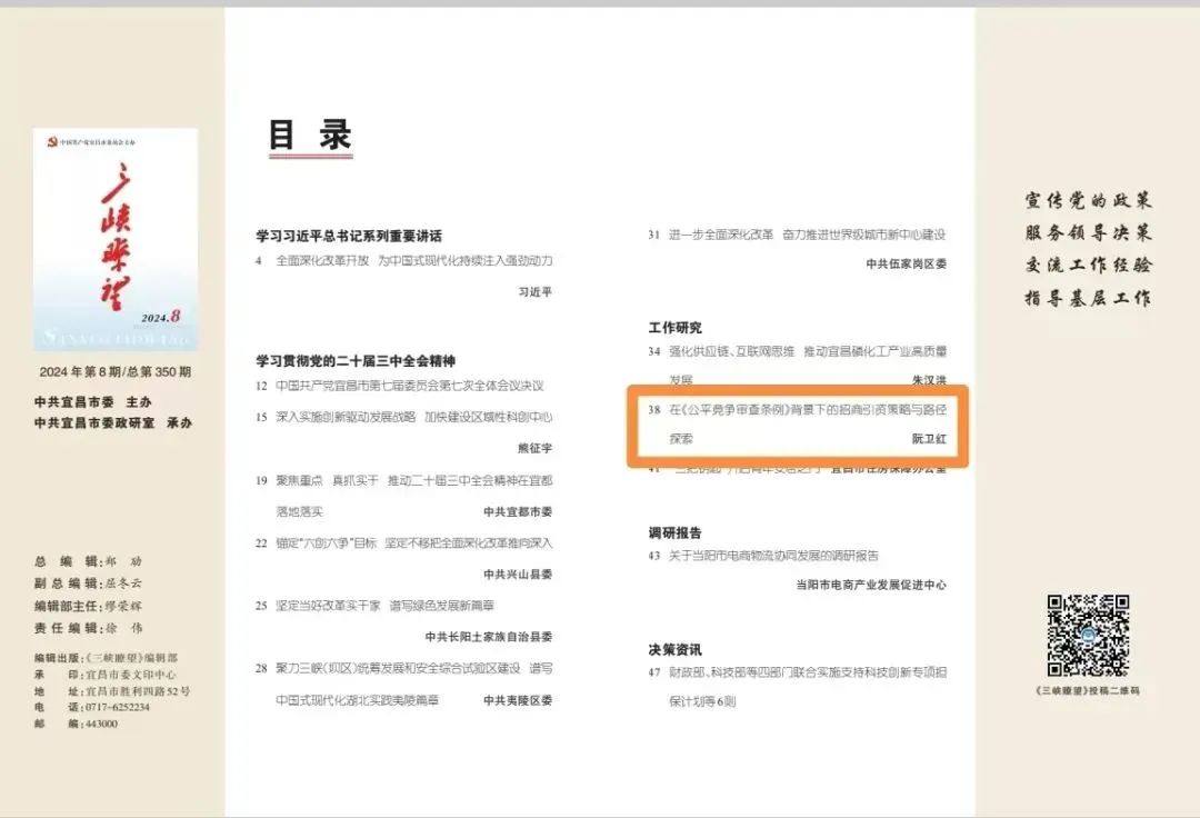 在新的历史背景下,招商引资路在何方一直是大家普遍关心的问题。近日,宜昌市委主办的《三峡瞭望》2024年第8期刊发了关于《在