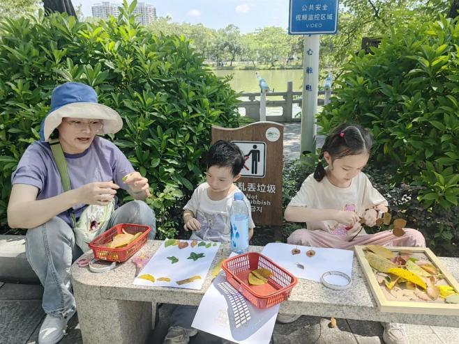 2.儿童友好理念融入生态文化教育。发挥公园教育功能,组织开展自然教育、人文探索、手工制作、垃圾分类、亲子植树等丰富多彩的活动,引导儿童发现自然之美、倾听自然之声、分享自然之乐。如利用自然材料,如树叶、树枝、果实、种子等制作作品,记录自然笔记,让孩子们培养观察力、思考力和创造力的同时,树立环保意识和责任意识,为建设绿美惠州贡献儿童力量。特色镇(街道)还积极挖掘本土文化内涵,融入本地历史文化,设置文化展示区,展示当地传统手工艺、民俗文化等,让儿童在感受自然之美的同时,了解和传承本土文化。
