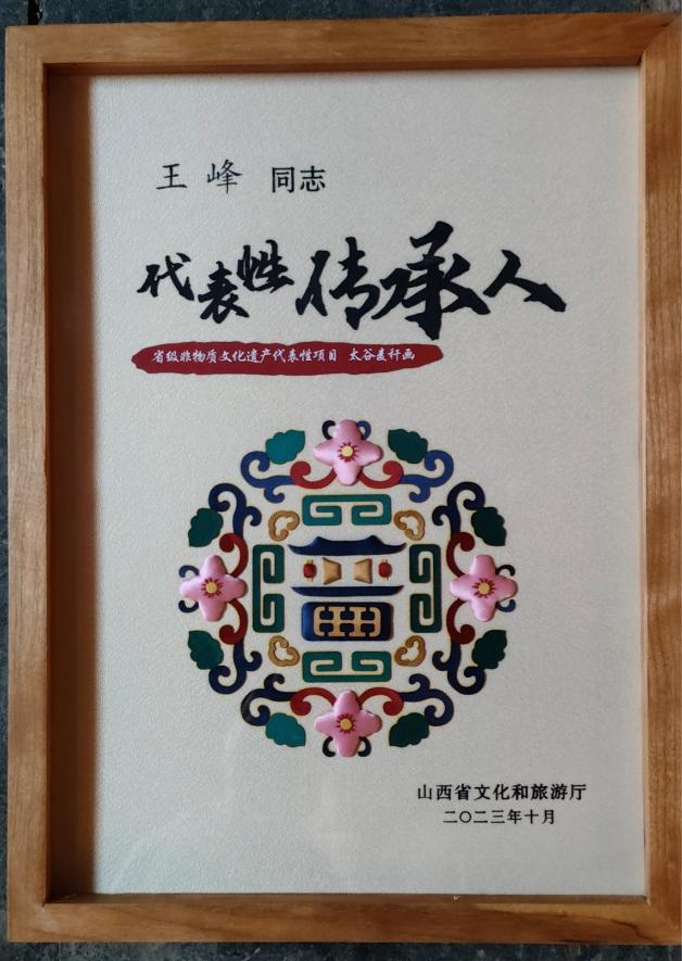 第五世传人王峰作为王氏麦秆画省级非遗传承人,致力于麦秆画从工艺品向艺术品的提升,将写生手段引入麦秆画,实现了麦秆画的创新发展。目前,王氏麦秆画以太谷区为中心,产品辐射到北京、青岛、韩国、俄罗斯等国内外市场。