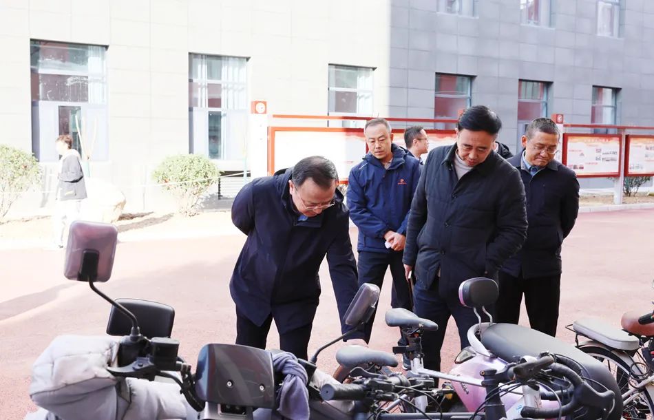 刘振奎一行实地考察了校园电动车停放各区域,对校园电动车车位的规划、上牌审核情况、电动车的类型以及校园电动车辆容载量等作了详细了解,对学生公寓大功率用电和“飞线充电”等违规情况进行了督查。