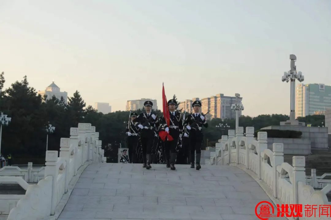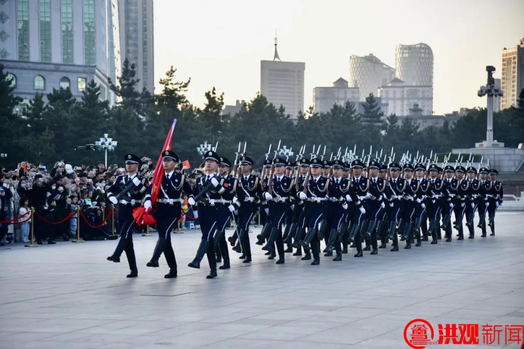 踏着金色的晨光护旗而出,