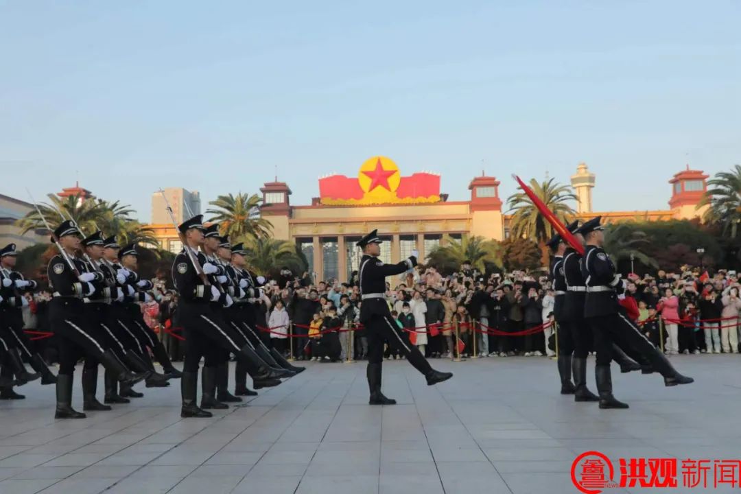 八一广场十二月升国旗活动,
