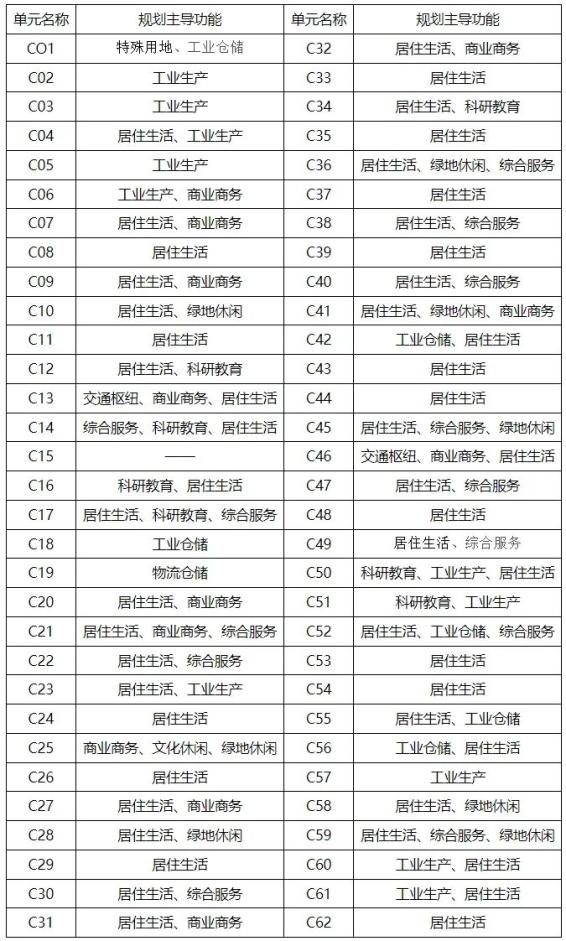 中心城区共划定81个详细规划单元,其中划定62个城镇地区单元,平均单元规模3.62平方千米;划定19个乡村地区单元,平均单元规模6.27平方千米。同时科学确定城镇地区单元的规划主导功能。
