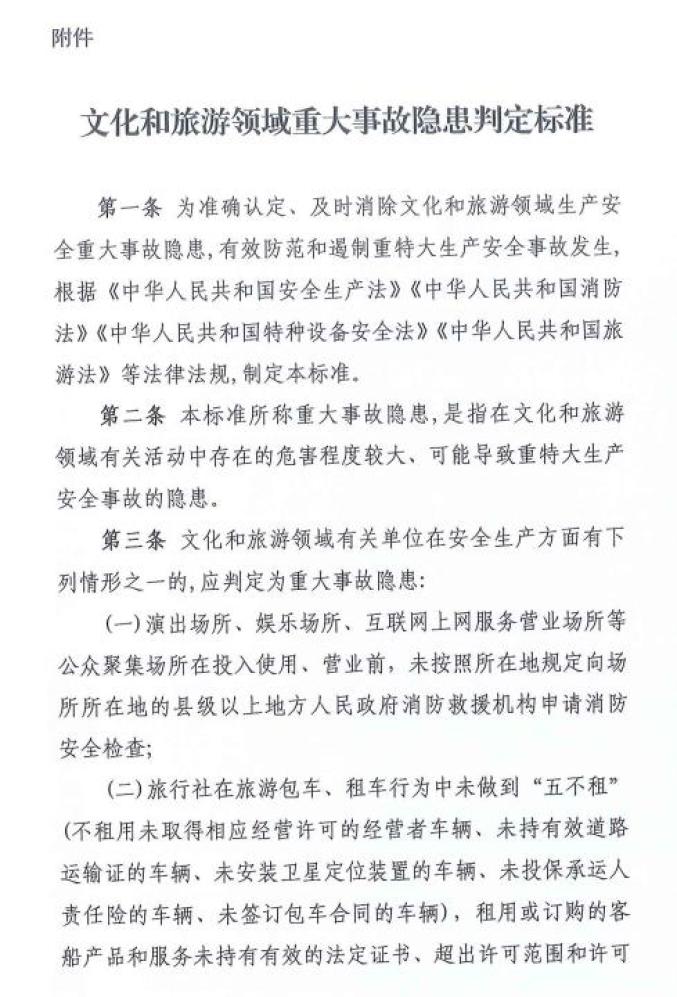 文化和旅游领域重大事故隐患判定标准