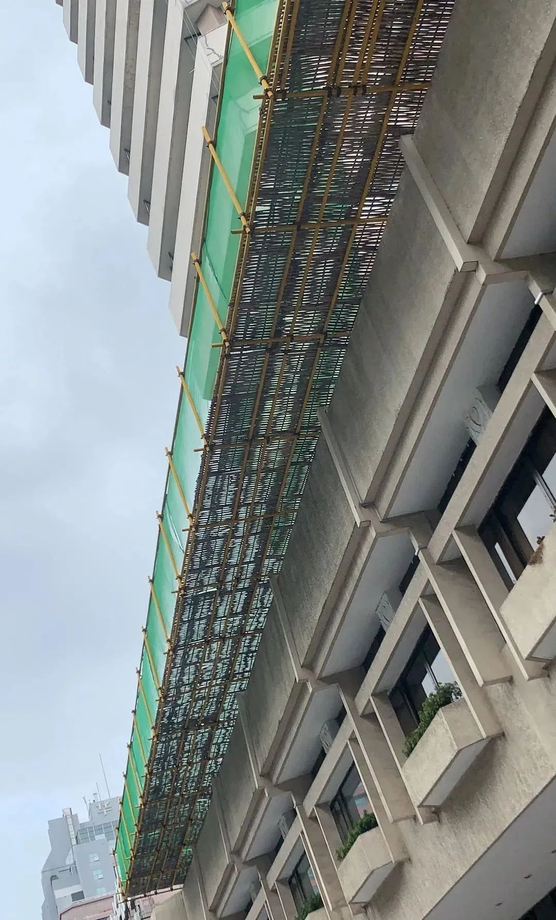 以前工地都是毛竹搭手架,毛竹光滑,与主体连接绑扎困难。若用发软的铅丝,会导致架子倾斜和塌掉。现在都是高空作业,全是标准规范的钢管代替,扶手、剪刀撑,层层铺满。还设硬拉结点,外围密目安全网,高层用型钢作钢管外挑架,特别稳固安全。
