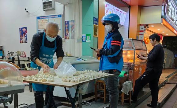 网约配送员在取餐时