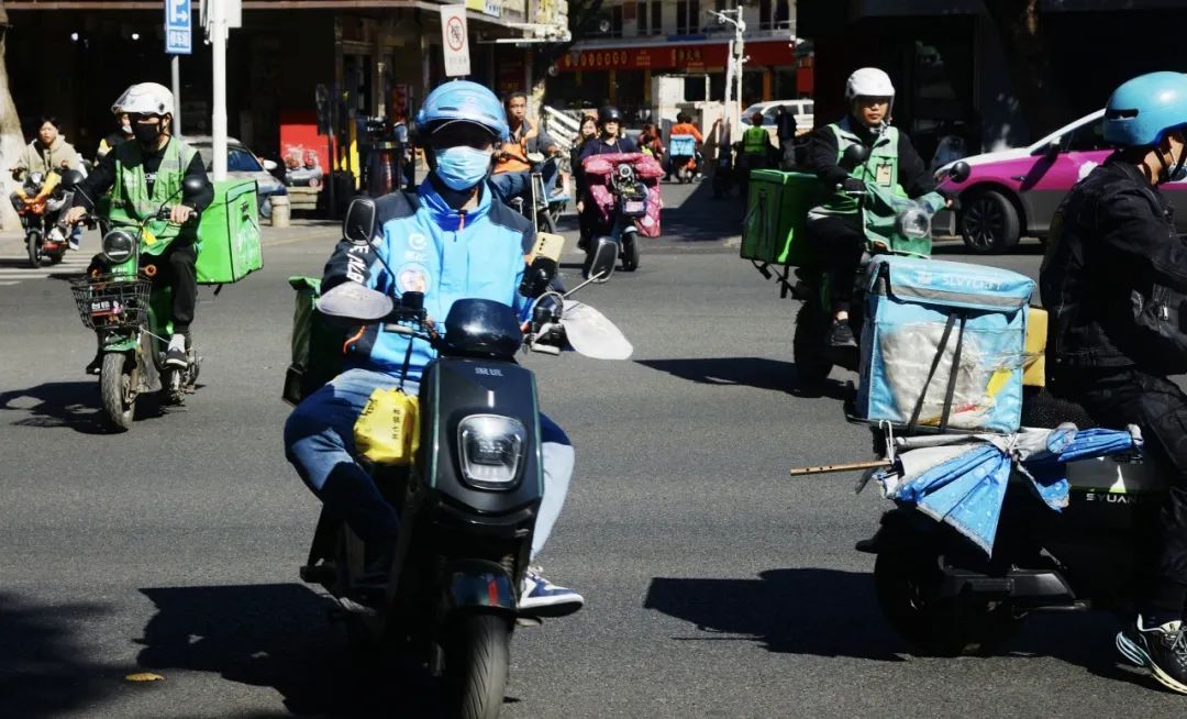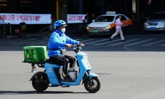 骑电动自行车配送外卖