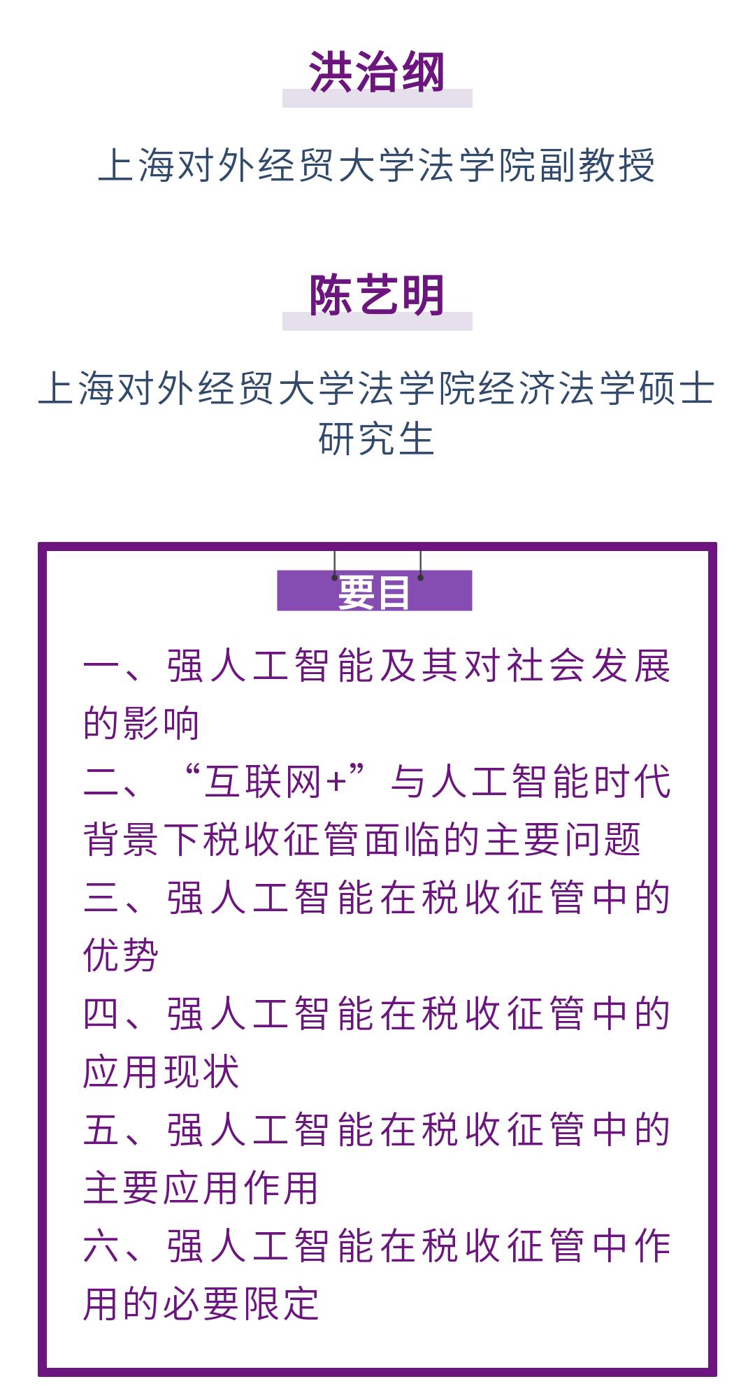 原标题:《洪治纲 陈艺明|强人工智能在税收征管中的作用与限定》
