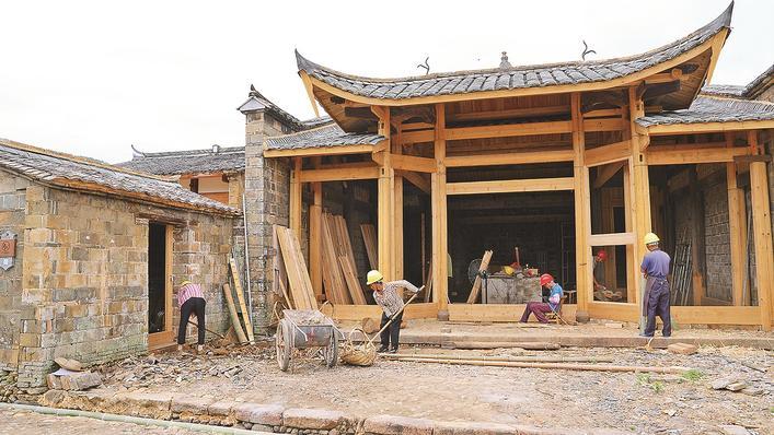 走进南山村文新公古宅,宽敞明亮的大厅让人眼前一亮,几名工人正忙着对老宅进行修复工作。“我们主要对已破损的墙体、屋面、屋顶、内部结构等进行保护维修。”古建筑木工师傅丘东生介绍,修缮按照古建制式,采用榫卯工艺墩接柱子、打牮拨正构架、刻复雕花、镶嵌门窗……所有的屋脊、窗棂门扇等,修缮时都按原工艺恢复。