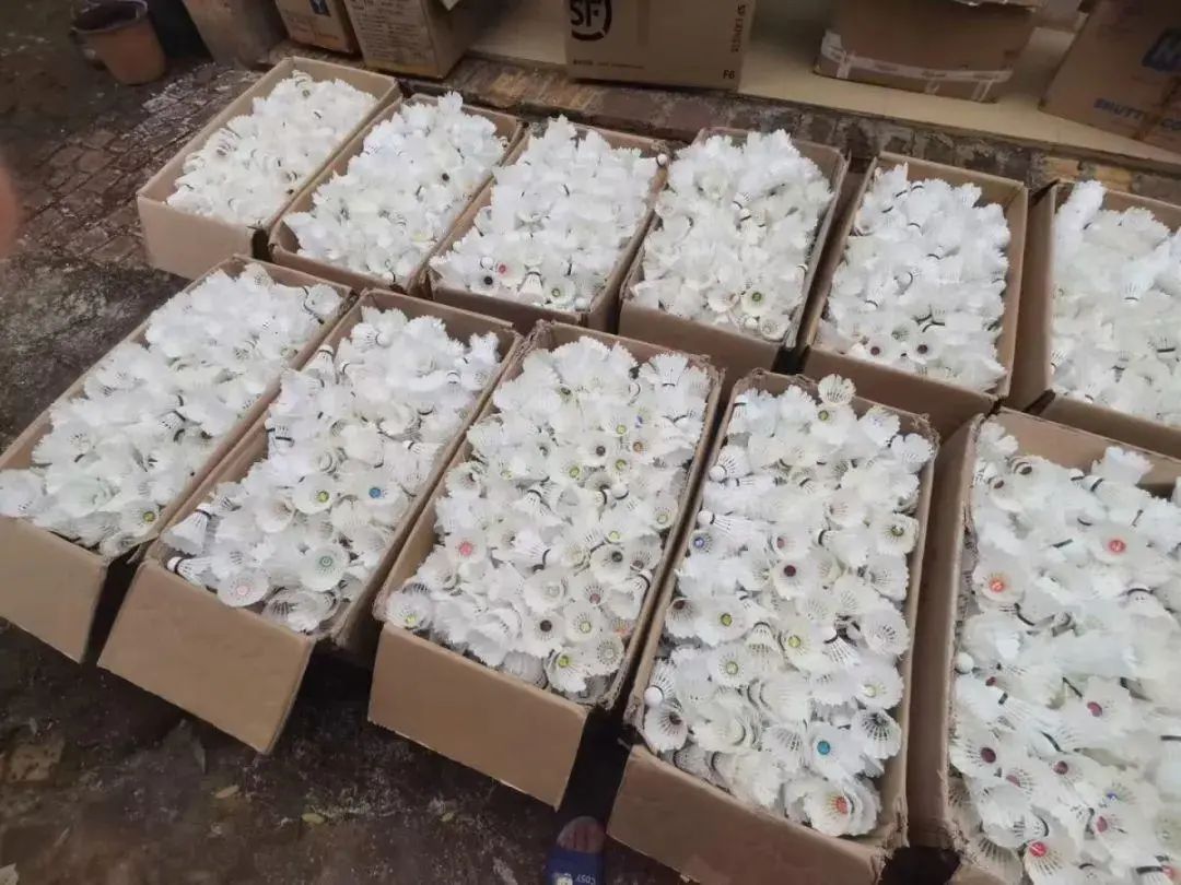 部分商户承认,这些羽毛球并不是全部拿去修复,“(人工)修复成本很高,现在做不到批量修复。”其透露,大部分二手球会被打碎做成“羽绒”,至于具体怎么操作,商户不愿再与记者多言,只催促赶紧发货。