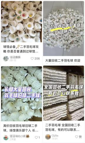 社交平台上,有不少关于批量求购二手羽毛球的信息。记者随机联系了几名商户,其表示采购需求为真:“130元600个,正好装一箱,整理好我找快递上门取”。