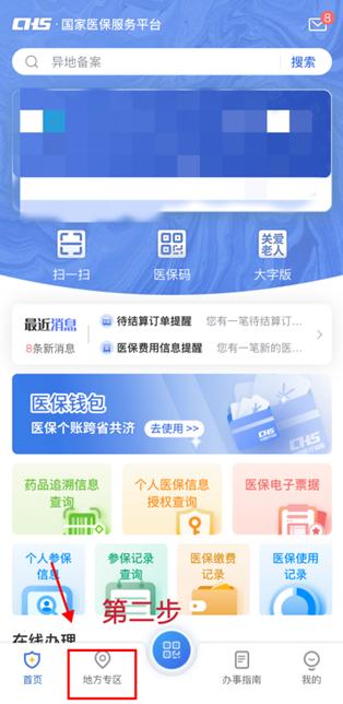 第2步:打开“国家医保服务平台”APP,点击首页底部的“地方专区”。