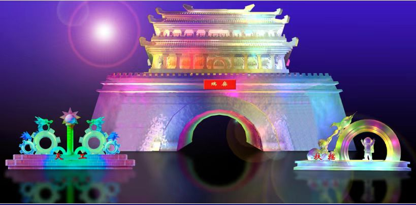 “追梦元素”系列主题中,《放飞梦想》《飞向太空》《遨游太空》《登月》等冰雕作品,以长着翅膀的天使、宇宙飞船、航天员和嫦娥玉兔为元素,激发着人们对未知世界的无限遐想和对梦想的执着追求。