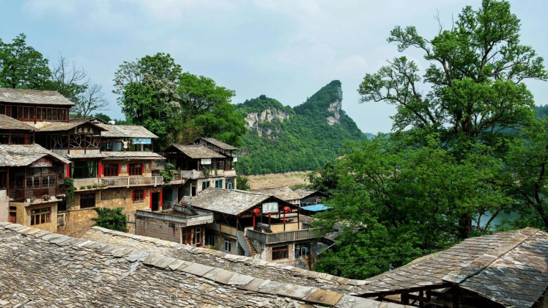 镇山村坐落于贵阳市花溪区石板镇,是一个由布依族、苗族混居的村寨,镇山村三面环水,依山而立,隔着湖水,与村子遥相对望的是半边山,自然界的神工鬼斧,将大山劈为两半,一半不知去向,另一半永远留到了这儿。由于占据得天独厚的地理位置,镇山村古色古香、独具民族风格的石头建筑文化令人仿佛走进了民族生态博物馆,为人瞩目。