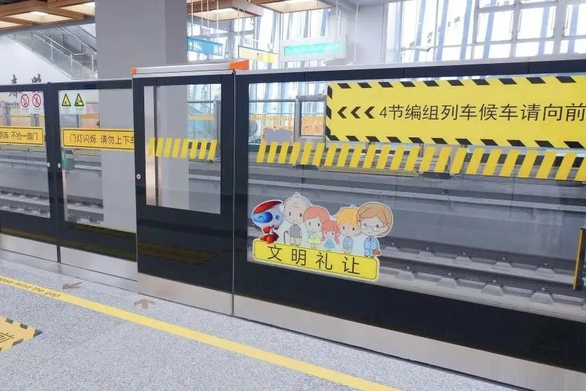 需要注意的是,市域机场线列车编组有4节和8节两种形式。此次记者乘坐的这趟列车是4节编组,在站台门及地面均有指示引导信息。