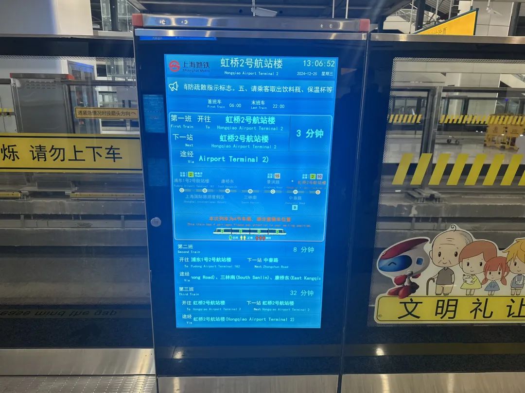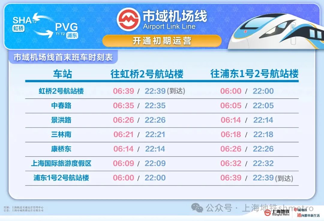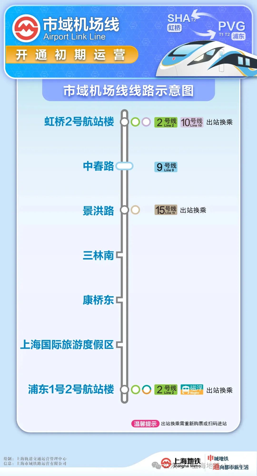 最新消息!上海轨道交通市域线机场联络线工程(以下简称“市域机场线”)(虹桥2号航站楼站~浦东1号2号航站楼站),将于12月27日(本周五)首班车起开通初期运营。