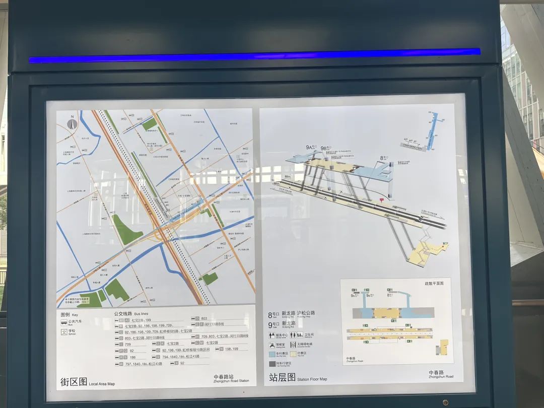 除虹桥2号航站楼站、浦东1号2号航站楼站,其余车站在站厅出入口处均设有公交信息显示屏
