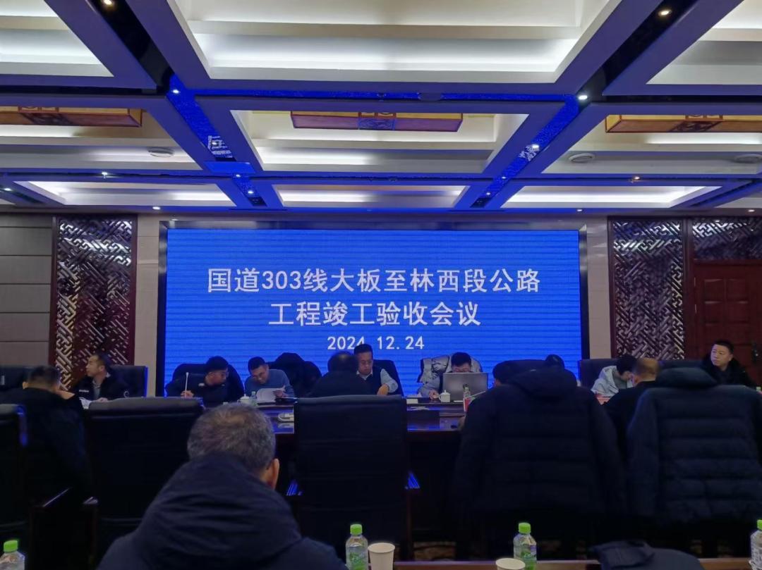 2024年12月24日,赤峰市交通运输局组织巴林右旗交通运输、林西县交通运输局、属地应急管理局和交管部门、项目参建单位对国道303线大板至林西段公路工程进行了竣工验收。竣工验收委员会通过听取汇报、查阅资料、现场查验,对项目竣工验收工程质量、建设管理工作及建设项目进行了综合评分、评价,形成了项目竣工验收鉴定书。建设项目综合评价等级均鉴定为“优良”,项目顺利通过竣工验收,正式进入运营期。