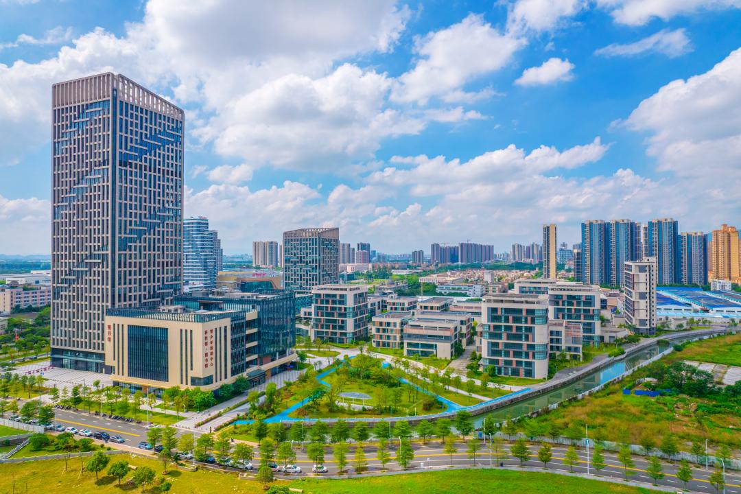 ——生活集聚。2020年,“两馆一中心”,包括科技馆、图书馆、青少年活动中心开放使用,生活在江海的幸福感迅速被拉高。2021年,江海万达广场的落成撬动起一片繁华,同年,“两中心一基地”和安全应急产业园也落户于此,产城人融合在这里成为了示范。