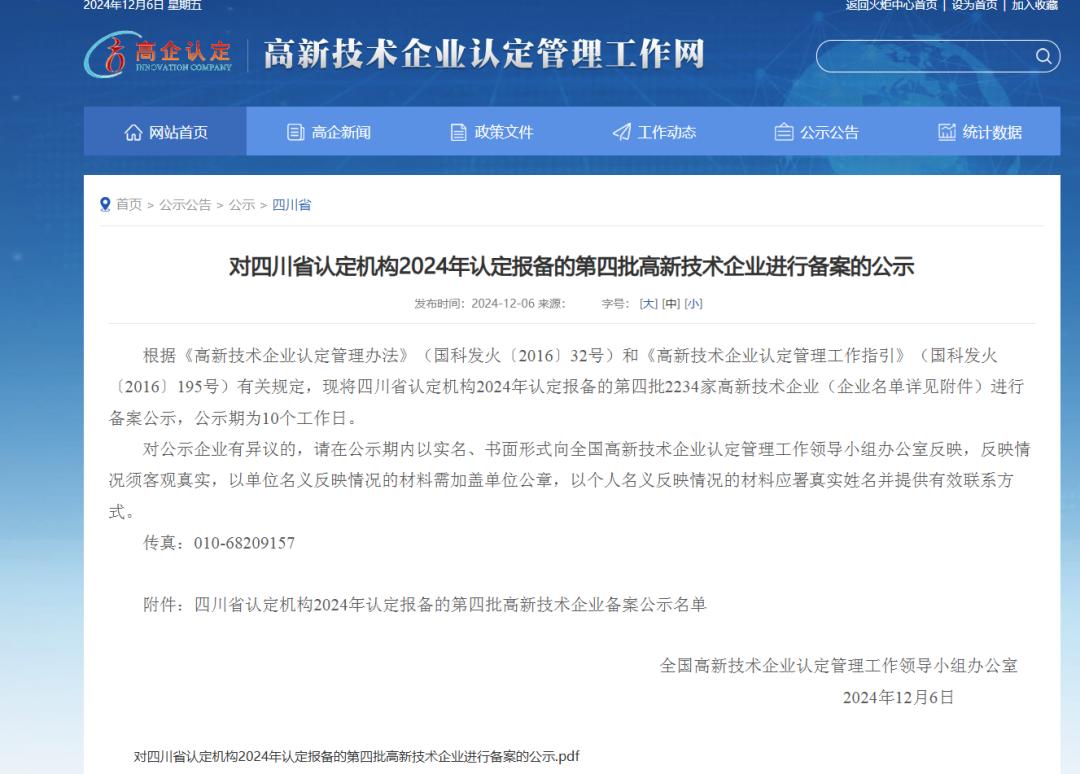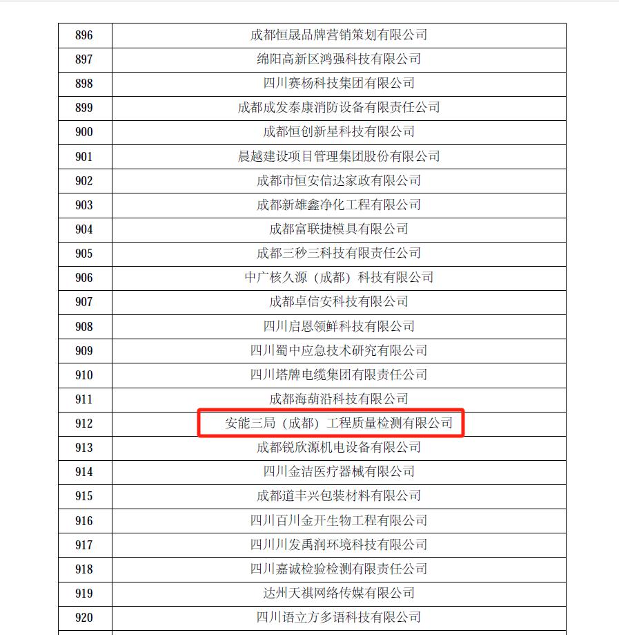 近日,全国高新技术企业认定管理工作领导小组办公室发布《对四川省认定机构2024年认定报备的第四批高新技术企业进行备案的公示》,安能三局(成都)工程质量检测有限公司顺利通过2024年“高新技术企业”认定!