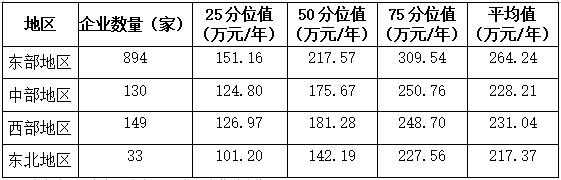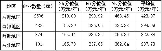 表4 中小型企业高管前三名薪酬总额分地区对比
