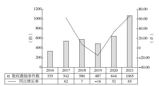 图3 2016-2021年上市公司公告股权激励事件数量及增长率情况