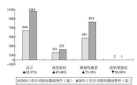 图5 2021年上市公司股权激励事件不同标的物数量及增长情况