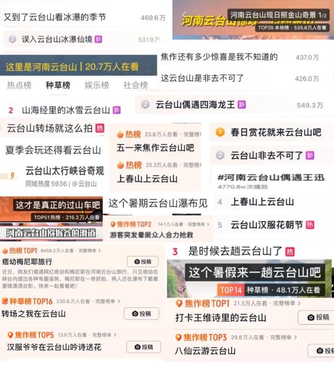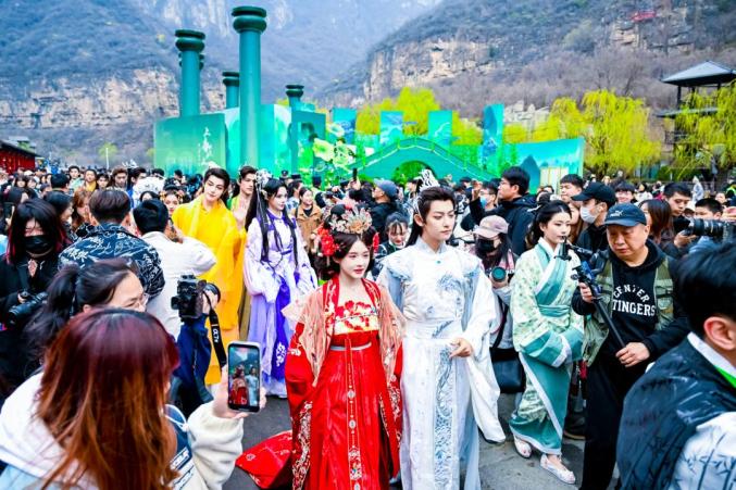 近年来,云台山始终坚持创新引领,深度挖掘文化资源,连续多年举办云台山汉服花朝节、云台山冰雪节、云台山新春喜乐会等多项热门IP活动,从春游赏花、观瀑戏水、登高赏红叶到感受冰雪年味儿,从“中医义诊”到王维吟诗赠花,从“四海龙王”送福到“八仙”游云台……多样创意营销,让云台山频频出圈出彩,荣获“中国旅游大奖·优选节事营销”奖等多项荣誉,受到越来越多青年人的关注和喜爱,“时尚化、年轻化、品质化”的品牌新形象逐渐深入人心。2024年以来,央视关注报道云台山56次,#山海经里的冰雪云台山、#上春山上云台山、#这个暑假来一趟云台山吧、#以王维之名赴云台山之约等多个话题登上全国热榜。