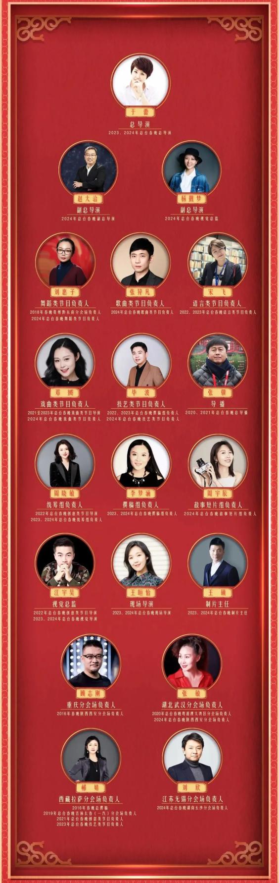 中央广播电视总台《2025年春节联欢晚会》正在紧锣密鼓筹备中。经上级部门批准,12月29日,春晚主创团队官宣:总导演于蕾,副总导演赵大治、杨觐梦,及刘惠子、张异凡、宋飞、邓赟、毕波、张骥、顾志刚、张敏、郝婧、刘欣等共同组成主创团队,全力推进2025年春晚创作。