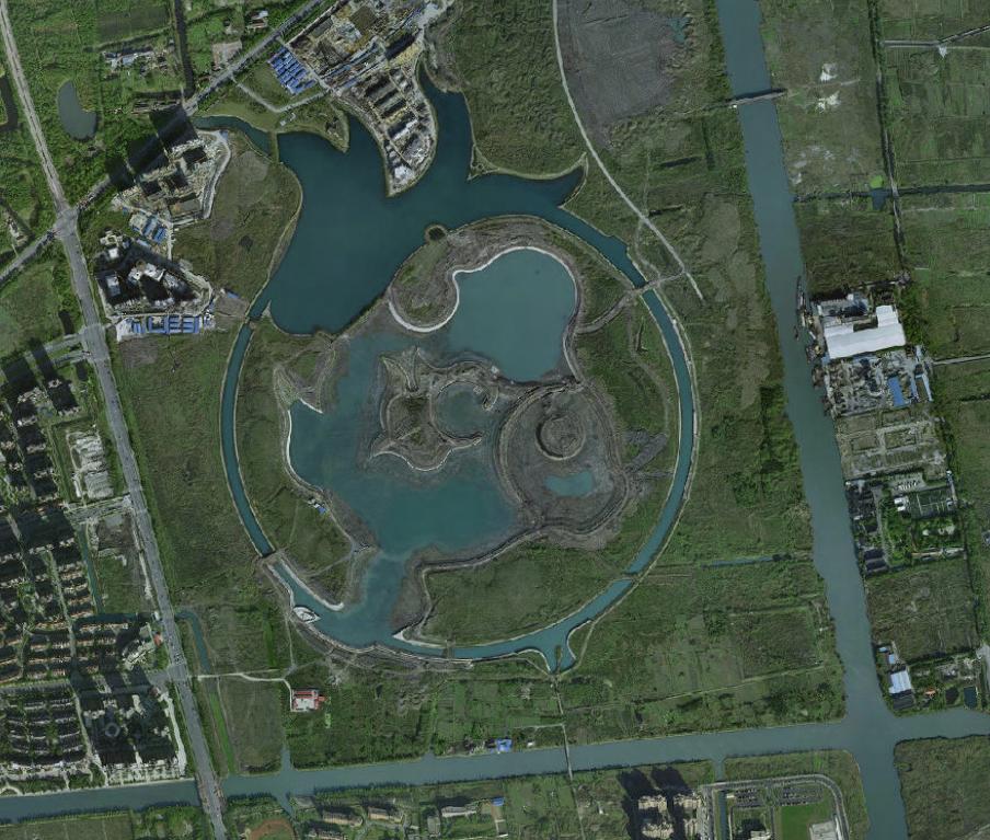 2005年,刚刚提出“上海之鱼”概念性方案,人们都不知道“上海之鱼”这个名字,只知道这里是一个村庄,名叫“龙潭村”,远远望去,一大片的农田稻浪翻滚。