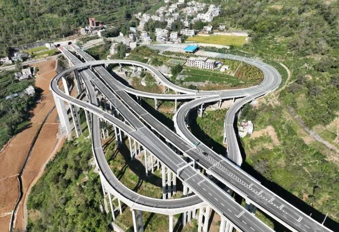 2024年12月2日,由中铁十一局集团有限公司承建的四川省宜宾市至攀枝花市高速公路云南永善连接线项目之黄华枢纽互通式立交桥,终于迎来了首个连续梁的浇筑。2025年元旦期间,记者在昭通沿江高速公路永善连接线朝阳隧道口至卡哈洛大桥之间的匝道施工现场看到,混凝土罐车、材料运输车等各种车辆穿梭,一派热火朝天的施工景象,A、C匝道梁面顶板上,分别有10多名工人分工合作,有的握住混凝土泵车输送管布料,有的用振捣棒密实,有的用抹刀收光……