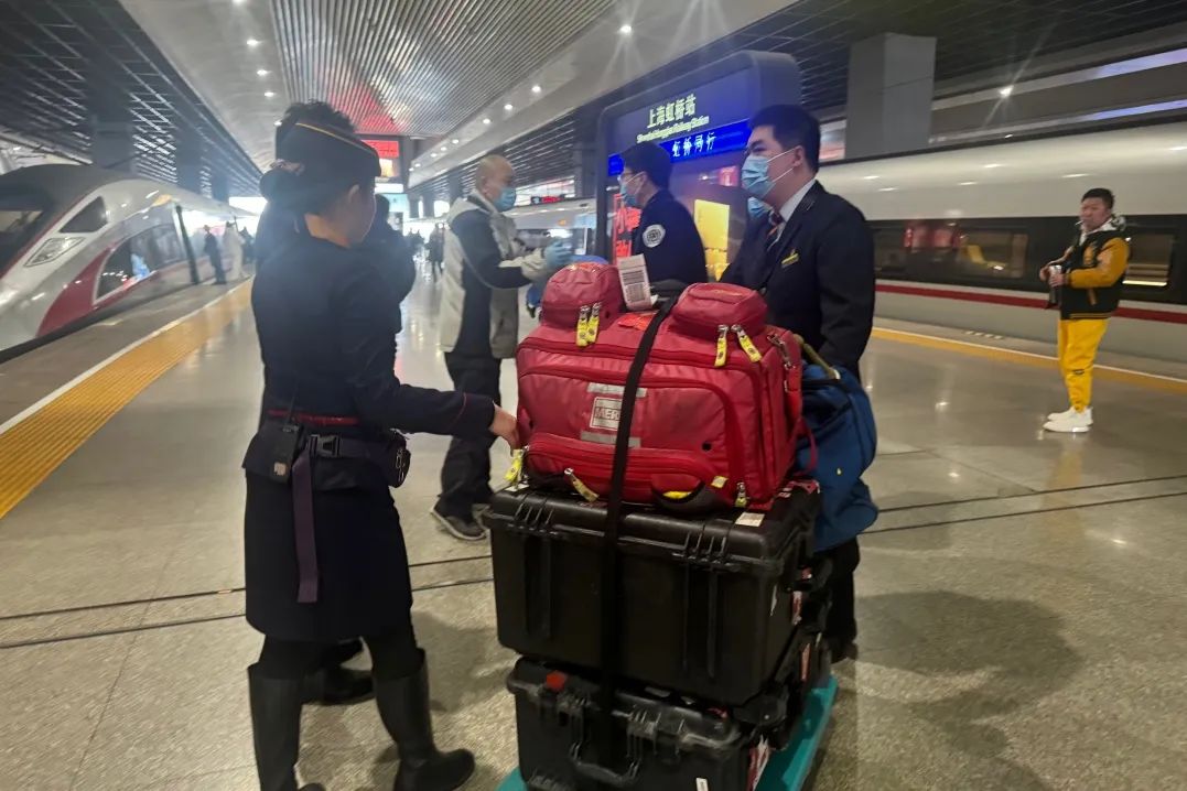 原来,2024年12月21日,在由长沙客运段动二车队值乘的G1745次列车上,旅客孙女士突然向列车工作人员求助,称身体非常难受,党员列车长蒋子怡立刻赶赴现场。孙女士表情痛苦,胸痛、呼吸困难、四肢麻木。蒋子怡迅速进行广播寻医,并通知列车员刘冬携带红十字急救药箱到达现场。