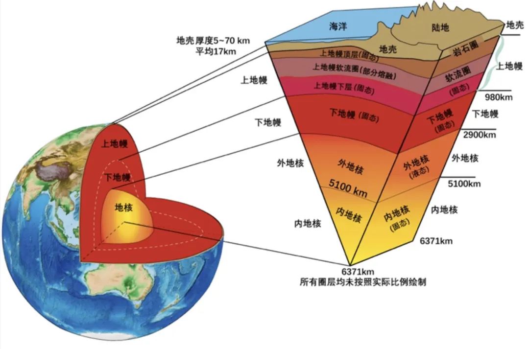 地球大体分成了地壳、地幔和地核3个层圈,再进一步划分,还可以分别分为更次级的层圈。例如:地幔可以分为上地幔和下地幔,上地幔顶部为固体状态的岩石层,它与地壳一起共同构成了岩石圈。岩石圈之下则是厚度数十千米至200千米的软流圈。那么,科学家是如何知道地球有这些层圈的?最主要的依据就是地震波。