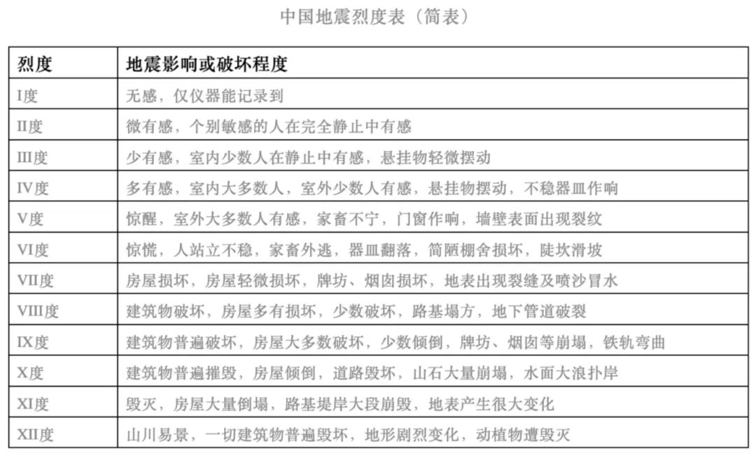 地震还有一个参数叫做烈度,是地震波传到地表以后,对地表的建筑物、基础设施造成破坏的程度,它与建筑物等基础设施的质量有非常大的关系。