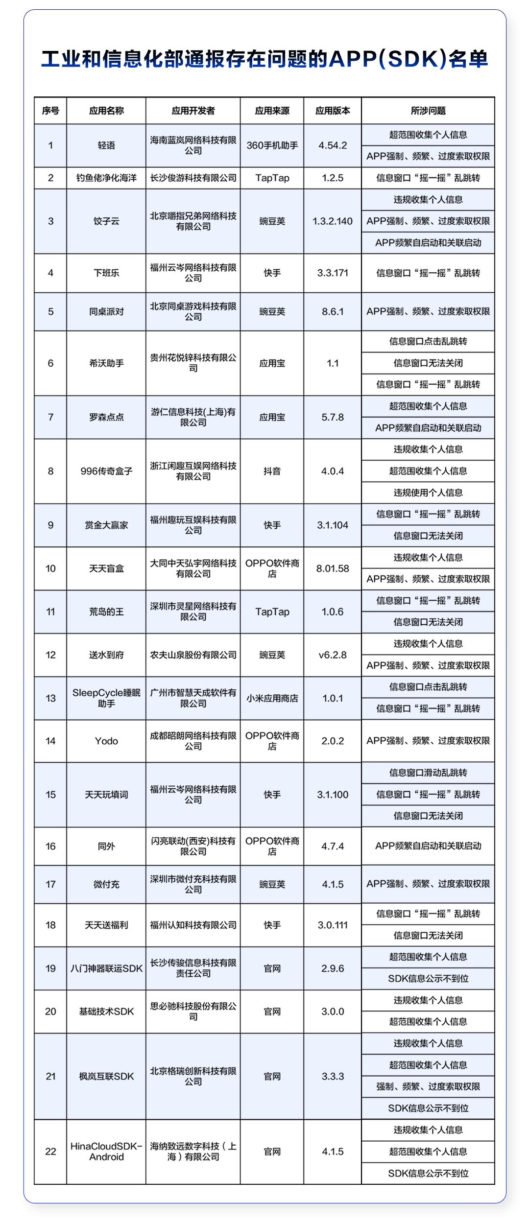 原标题:《工信部通报!22款APP(SDK)侵害用户权益!》