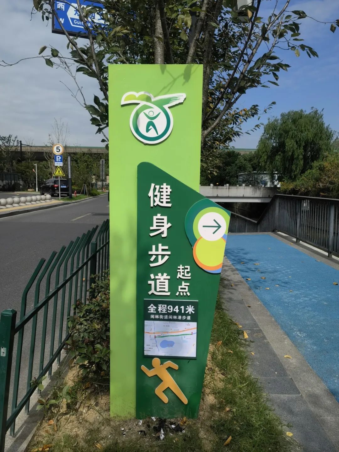 步道沿闲林港而建,位于余杭交投东侧,东延至宝庆桥,全长941米。步道每100米设健康标语,涵盖膳食、运动、戒烟限酒及心理平衡等知识,沿线设休息椅、健康教育宣传栏,定期更新健康资讯。