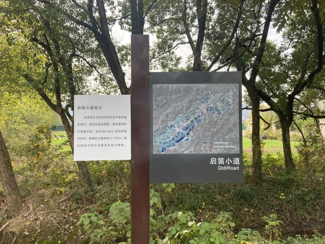 步道位于中泰街道岑岭村,东起杭泰路,西至紫荆村竹笛展示馆,全长8600米。沿途设有健康公厕以及3个可供居民休息的健康休憩亭,亭上均设置有健康宣传标语展示牌。