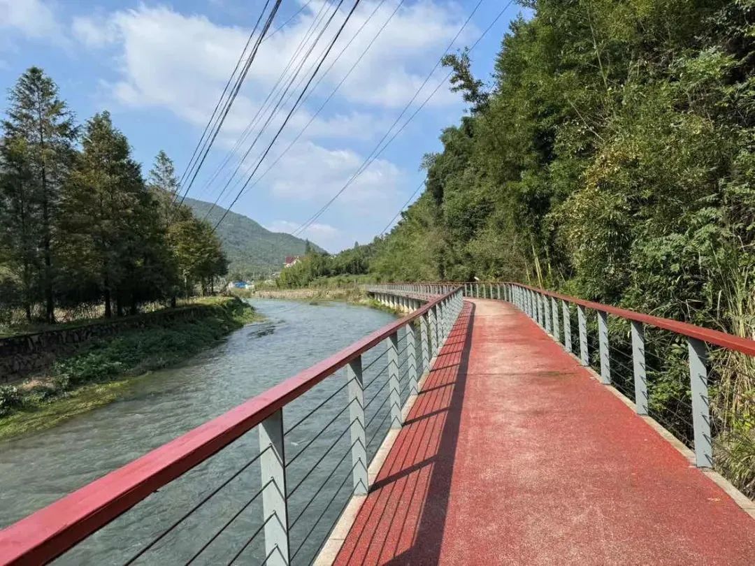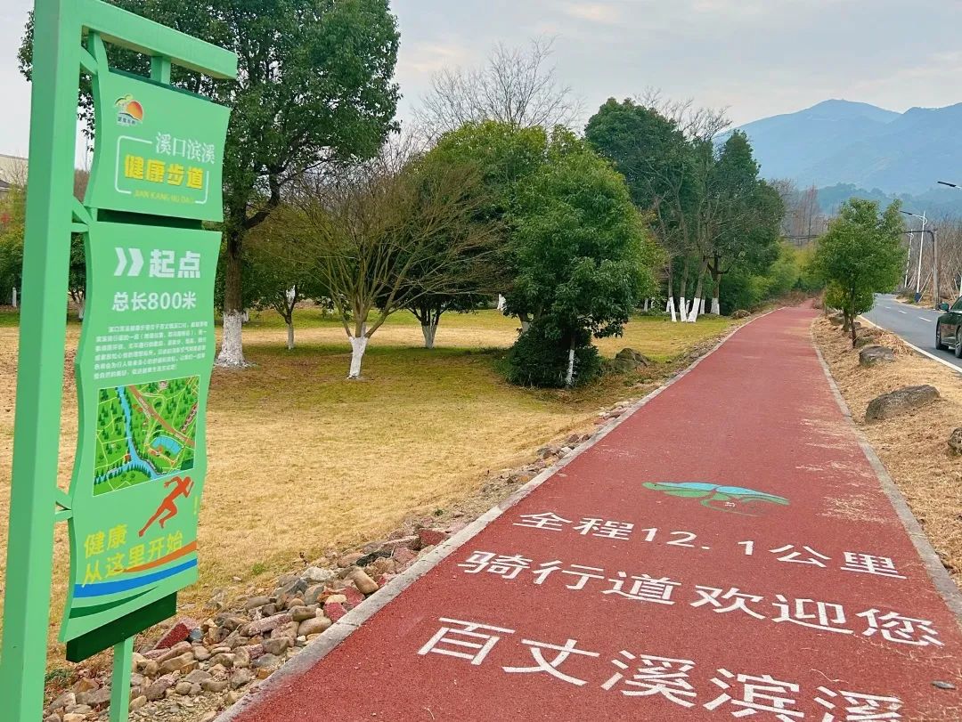 步道位于百丈镇溪口村,起点位于新104国道北侧、两溪三道汇合之处,终点至西苕溪两岸,全长800米。步道是一条无车通行的路段,起始点设置了指示牌,配有解说板、线路地图等。