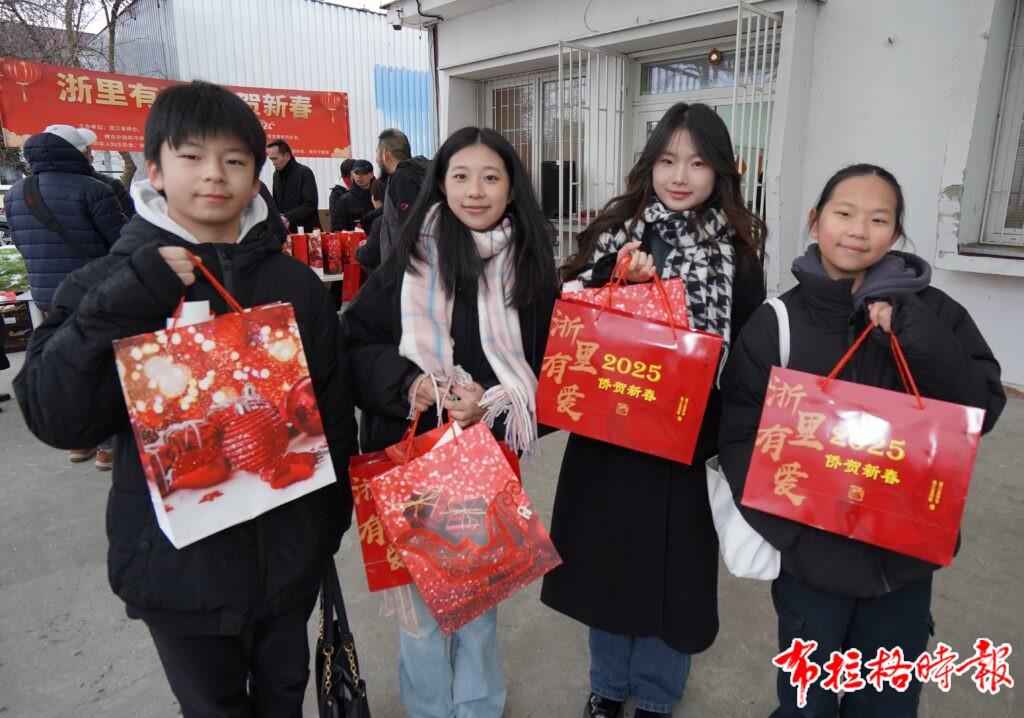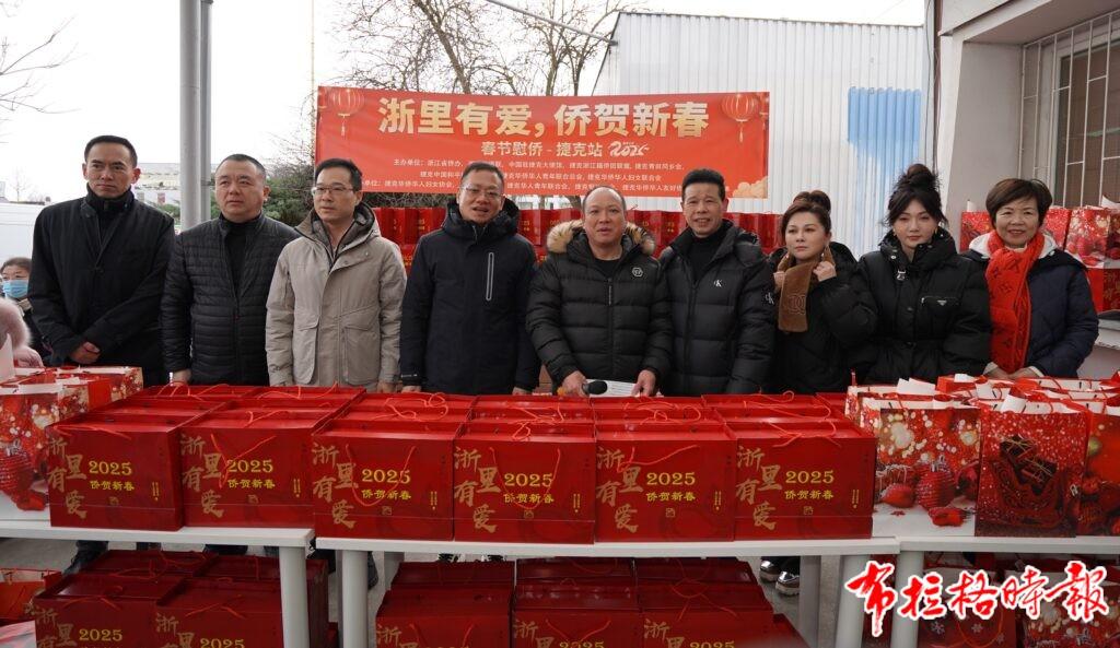 此次活动分发的数百份新春节日礼包专程从国内运往捷克,这些精心准备的礼包中,装满了浙江知名糕点、小吃,还有寓意吉祥的春节对联、精美的窗花以及喜庆的灯笼等礼品,每一件都承载着祖国对海外侨胞的深情厚谊。同时,浙江籍侨团联盟也贴心地准备了三百份青田糖糕、面条等特色礼包,一同分发给旅捷侨胞,让他们在异国他乡也能品尝到家乡的美味,感受到浓浓的年味,收获满满的幸福。