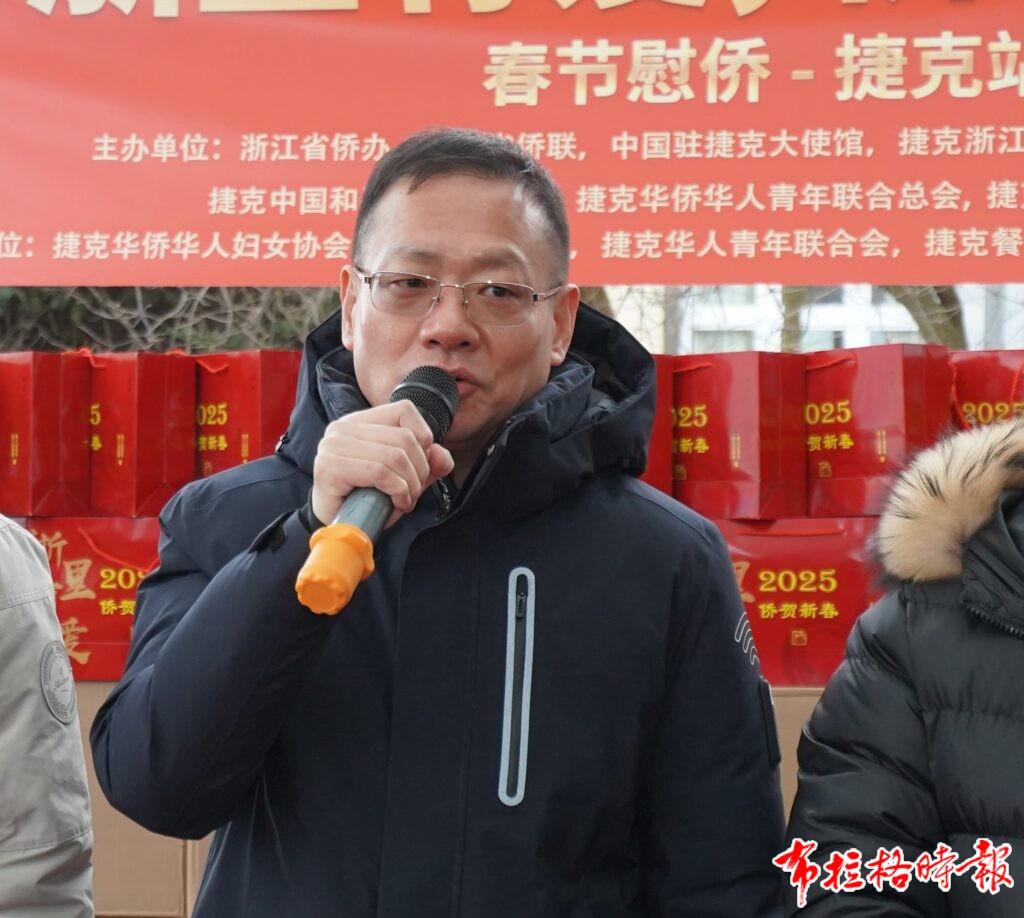 张利海首先对大使馆的大力支持表示衷心感谢,同时向浙江省侨办、浙江省侨联等部门为这次活动所付出的努力致以崇高的敬意,并感谢旅捷各侨团以及华文媒体对此次活动的大力支持和帮助。张利海介绍,浙江省侨办和浙江省侨联对“浙里有爱”活动极为重视。通过“一次活动、一封家书、一份礼盒、一次拜访”等创新形式,不断丰富“浙里有爱”活动的载体和内涵,弘扬中华优秀传统文化,增进民间交往,讲好中国故事、浙江故事。