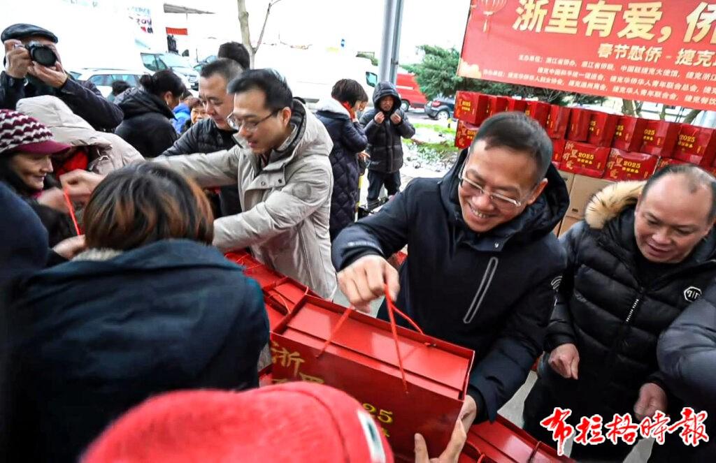 在春节即将来临之际,为向海外侨胞传递家乡人民的关心关爱,共同庆祝成功申遗的传统新春佳节,浙江省侨办、浙江省侨联联合海外浙籍侨团共同举办2025“浙里有爱·侨贺新春”春节慰侨活动,本次活动将在海外20余个国家陆续举行,将发放近2万份春节礼盒,向广大海外浙籍侨胞传递春节问候。今天浙小侨带您一起走进法国、捷克、西班牙站的活动现场!