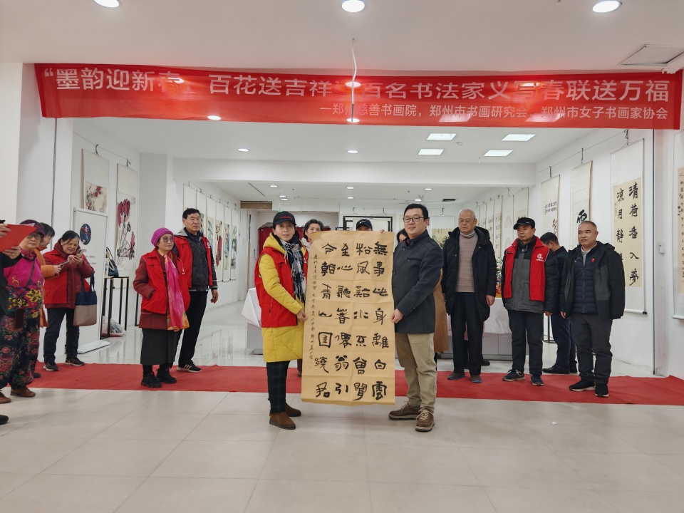 1月16日上午10时,润太广场一楼东门热闹非凡,由郑州慈善书画院、郑州市书画研究会、郑州市女子书画家协会联合举办的 “墨香迎新春,百花送吉祥” 百名书法家义写春联送万福活动在此隆重举行。此次活动旨在弘扬中华优秀传统文化,为即将到来的2025年新春佳节增添喜庆氛围,向广大市民传递美好祝福。