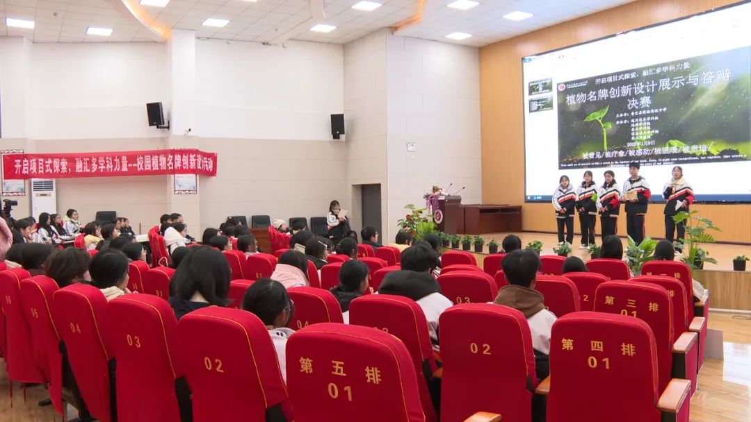 决赛答辩现场,同学们井然有序地轮流登台展示自己小组精心制作的植物名牌。他们不仅图文并茂地讲解植物的特性、生长习性等学科知识,还详细阐述了制作名牌过程中材料的选择与运用。台下的评委们专注聆听,不时提笔记录要点并提问,观众们也热情高涨,针对自己的疑惑之处提出问题。此次活动让同学们都收获颇丰。