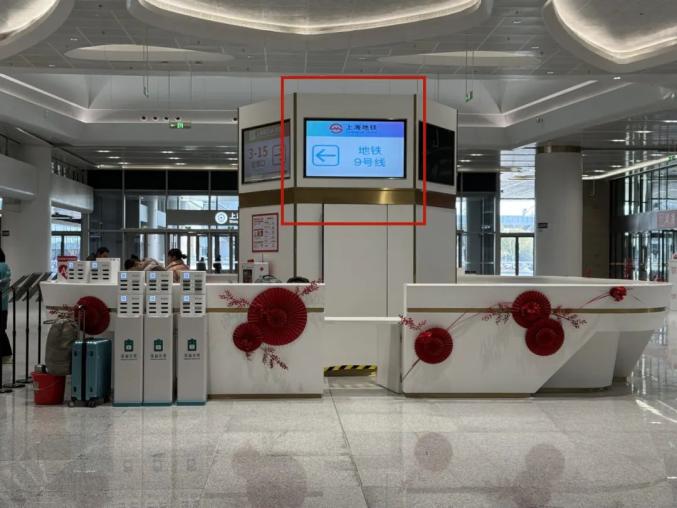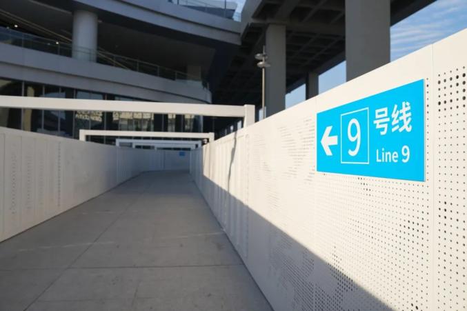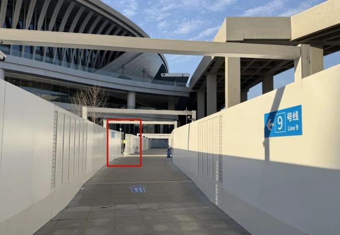 旅客从北区出站后,即可看到位于前上方的换乘标识,换乘地铁9号线的旅客往前走,进入服务中心。