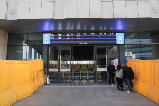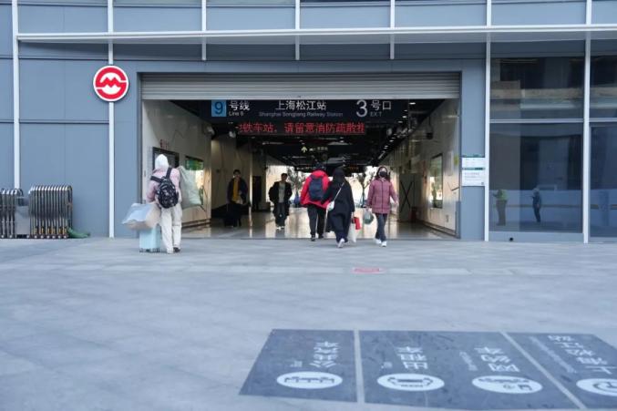 旅客从南区出站后,沿着通道步行,即可看到地铁上海松江站站的出入口。