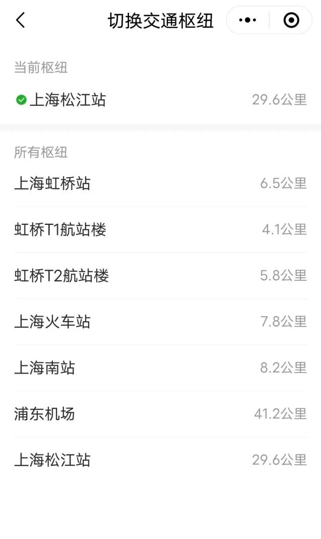 点击页面左上角的菜单,还可以在上海各个主要交通枢纽之间进行切换哦!