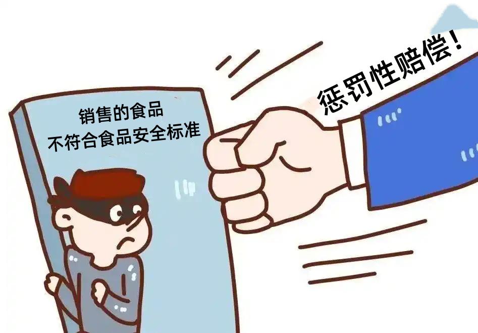 第一百四十八条第二款规定:“生产不符合食品安全标准的食品或者经营明知是不符合食品安全标准的食品,消费者除要求赔偿损失外,还可以向生产者或者经营者要求支付价款十倍或者损失三倍的赔偿金;增加赔偿的金额不足一千元的,为一千元。但是,食品的标签、说明书存在不影响食品安全且不会对消费者造成误导的瑕疵的除外。”