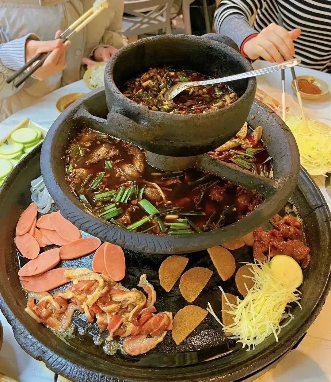 如果要说毕节小吃的“名片”,毕节活油烙锅绝对首当其冲,无论是外形、食材、做法都在贵州烙锅“江湖”中有着极高的辨识度。活油烙锅,凸形锅上的活油蘸水碗是毕节活油烙锅的最大特征,活油碗周边填满五花肉、牛肉、土豆、臭豆腐等食材,这展示出了活油蘸水在毕节烙锅中的重要地位,万物皆可烙锅,定“味”还看蘸水。