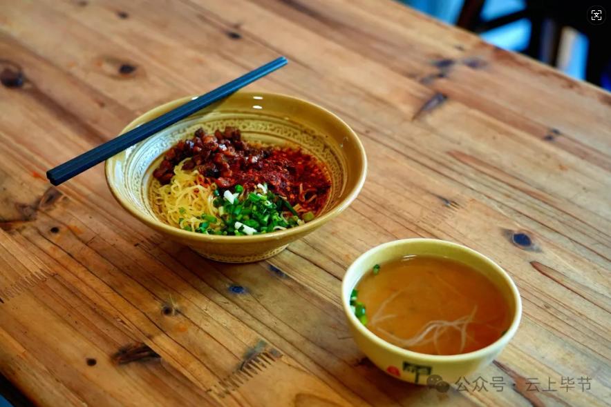同时,辣椒面作为脆哨面重要的组成部分也有讲究,一般店家都会配好几种辣椒供食客选择,根据毕节人的饮食习惯,脆哨面所用面常常口感较硬的细面,最后再配上一碗清汤,堪称完美。如今,毕节脆哨面制作技艺已入选毕节市非物质文化遗产保护名录,可见其重要地位。